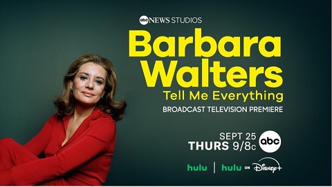 Today, ABC News Studios announced the network premiere of "Barbara Walters Tell Me Everything," the feature-length documentary produced by Brian Grazer and Ron Howard's Imagine Documentaries, on Walters' birthday, Thursday, Sept. 25 (9:01-11:00 p.m. EDT), on ABC. The documentary celebrated its world premiere at a sold-out theater at the 2025 Tribeca Festival before premiering on Hulu in the U.S. and on Disney+ in select international territories. From the producing team behind the 2024 Emmy(R) Award-winning Best Documentary, "Jim Henson Idea Man," this definitive documentary, directed by Emmy-winning filmmaker and journalist Jackie Jesko, examines the broadcast legend's pivotal role in the history of journalism and her pioneering example for women in the industry.