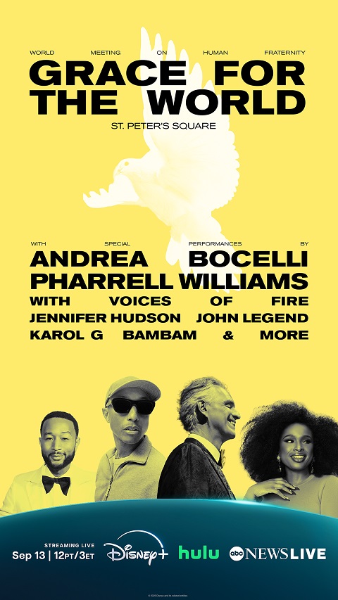 Grace for the World will be live streamed globally on Disney+, Hulu, and ABC News Live on September 13 starting at 3pm ET / 12pm PT, with a replay of the concert available on Disney+ after the event. Live from the heart of Vatican City at St. Peter's Square, this historic event marks the first time that a concert will be staged in this significant setting.